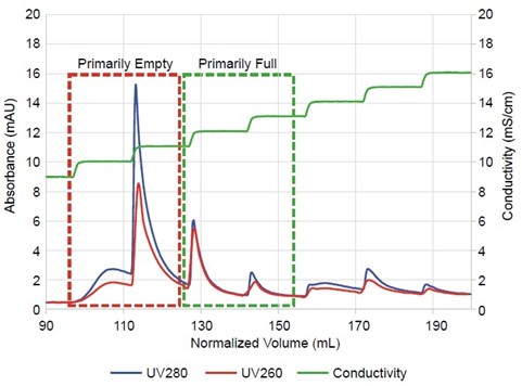 Mustang Q XT5 캡슐은 최적화된 단계적 구배 용출을 적용하여 전체 캡시드를 효율적으로 농축합니다.