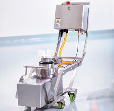 교체 가능한 초전도 구동 장치가 포함되며, 독자적인 임펠러 기반의 일회용 혼합 시스템(levitating impellerbased)은 플라스틱 탱크(trolley 사용) 또는 스테인리스 스틸 (SS) 탱크 위에 장착됩니다. 충전 후 일회용 시스템과 결합하면 초전도 구동 장치가 임펠러의 부상 및 회전을 유도하여(그림 1) 폐쇄된 시스템에서 효과적인 혼합 작업이 이뤄집니다. 임펠러와 구동 모터를 결합할 때는 일회용 시스템 내부에서 dynamic sealing 또는 shaft penetration 기능이 필요하지 않습니다. 구동 모터는 이동형 카트에 담겨, 일회용 시스템에서 쉽게 분리하고 다른 혼합 시스템에 다시 연결할 수 있습니다. 따라서 하나의 구동 장치로 다양한 크기의 일회용 혼합 시스템에 사용할 수 있습니다.